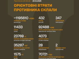 Генеральный штаб Вооруженных сил Украины 20 декабря 2025 года опубликовал новые данные о потерях российской армии в ходе боевых действий на украинской Подробнее
