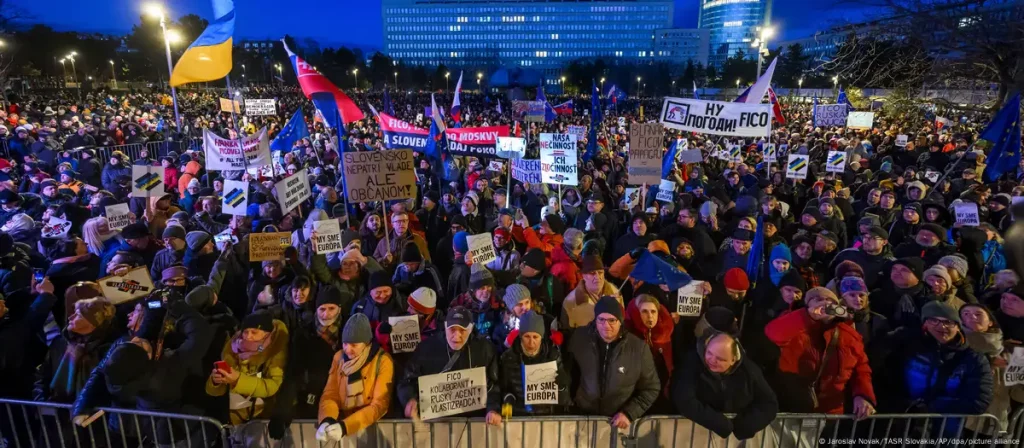 Напомним, действия премьер-министра Словакии Роберта Фицо в сфере внешней политики вывели людей на протест. Акция состоялась в пятницу вечером, 3 января, в Братиславе. На митинг пришло несколько тысяч человек, не согласных с пророссийской политикой премьера Роберта Фицо.