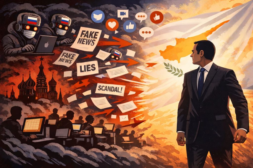 председательства Европейского совета Кипрской Республикой, вызывает подозрительным, а при внимательном просмотре видео становится очевидным, что оно представляет собой набор заявлений, создающих целенаправленный нарратив о коррупции против президента Республики, а не представляя его непосредственное участие в коррупционном деле. Кроме того, использование скрытой камеры напоминает устоявшуюся российскую практику создания видеороликов типа «компромат», которые затем обрабатываются с целью представления конкретного нарратива.