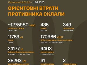 Генеральный штаб Вооруженных сил Украины 11 марта 2026 года опубликовал новые данные о потерях российской армии в ходе боевых действий на украинской Подробнее