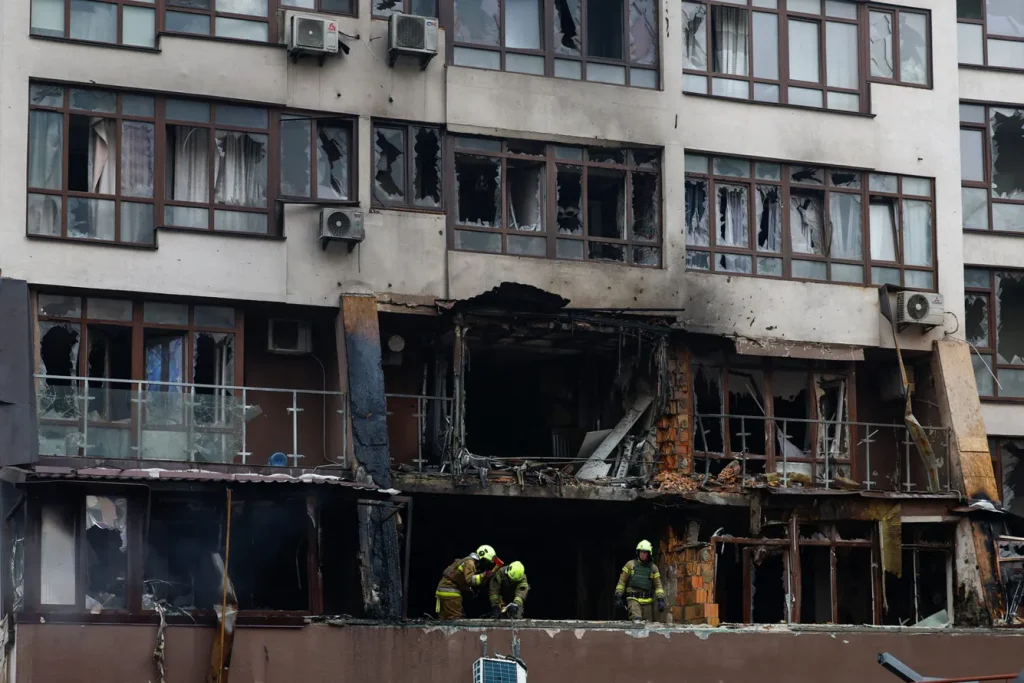 Глава Киевской городской администрации Тимур Ткаченко сообщил, что в Дарницком районе в результате атаки произошло возгорание на крыше многоэтажного дома и нежилого здания, а также в супермаркете. В Шевченковском районе горели жилой дом и балконы в многоэтажном доме, в Днепровском районе – торговые ряды, обломки беспилотника упали на территорию детского сада, в Соломенском районе пожары произошли в нежилом доме и складских помещениях.