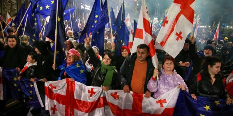 Акции протеста стали еще более массовыми после заявления премьер-министра страны Ираклия Кобахидзе 28 ноября об отказе от переговоров о вступлении в ЕС до 2028 года. Евросоюз и США осудили решение правящей партии и резко сократили сотрудничество с Грузией. Оппозиция призвала ЕС не признавать легитимность правительства «Грузинской мечты».