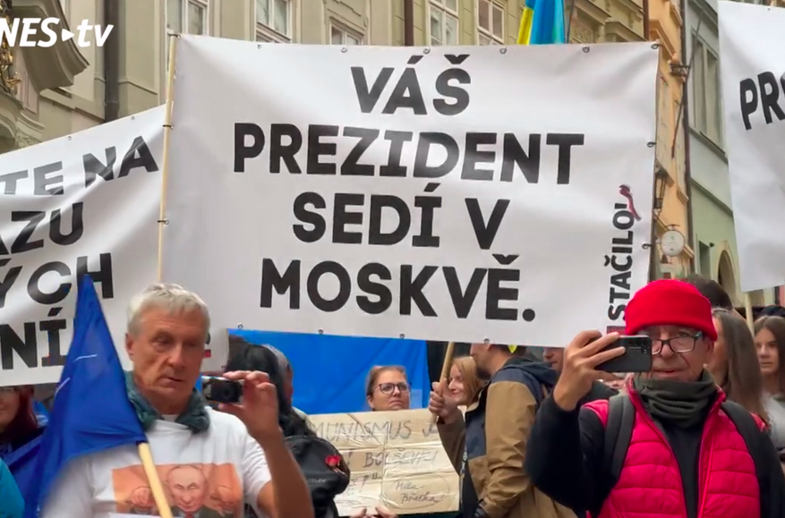 «Участники субботнего митинга в Праге 27 сентября утверждали, что собрались, чтобы помешать фальсификации выборов, которые пройдут в Чехии в начале октября. Фальсифицировать их якобы хочет Брюссель, то есть Еврокомиссия, НАТО, за выход из которого выступает большинство собравшихся политиков, и чешские либералы. Главной целью же митинга было оказать давление на действующего президента страны Петра Павла, поддерживающего нынешнее либеральное правительство, которое, судя по соцопросам, может выборы проиграть. Противники митингующих, организовавшие контрдемонстрацию, в ответ на эти обвинения скандировали: „Ваш президент в Кремле“, подразумевая, что протестующие движения и партии все выступают с антиукраинских позиций и разделяют российские пропагандистские нарративы.