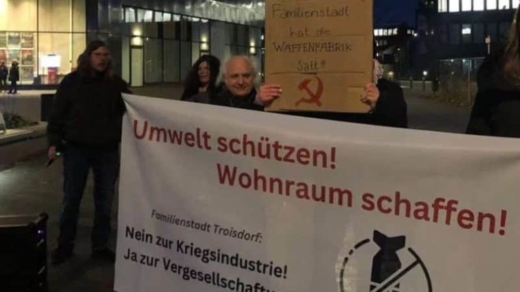 В течение нескольких недель Тройсдорф конфликтует с гигантом оружейной промышленности Diehl Defence, чей местный завод производит зажигательные устройства, необходимые для большого количества взрывчатых материалов, таких как ракеты и ракетные заряды.